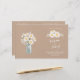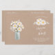 A simplicidade de um buquê de margaridas brancas em um jarro de pedras, auxiliado pela letra branca, cria um elegante design de casamento, mas minimalista. O papel Kraft adiciona um charmoso pano de fundo rústico. O texto é totalmente editável.