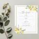 Delicar as flores amarelas da aquarela decoram esta bela folha de bar de noivado da tarde de verão. A lista de bebidas para o casamento do jardim é acentuada por uma delicada faixa verde retangular verde e folhas botânicas sob os elegantes peões ensolarados. Floral e leve, perfeito para uma cerimônia ao ar livre.