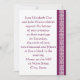 Traga um toque do estilo oriental para o seu evento com este convite para o casamento, com uma fronteira de vinho profunda no lado direito, decorado com um padrão geométrico inspirado na trabalho de arte chinesa. O lado esquerdo da placa tem muito espaço para todos os detalhes do evento especial com algum texto de exemplo no lugar que pode ser personalizado para ajustado das suas necessidades. Um nó chinês de boa sorte no vinho termina as coisas nas costas para criar uma nota final elegante. Certifique-se de verificar os outros produtos da Elegância Chinesa no Vinho, para criar uma visão verdadeiramente coordenada do seu evento.