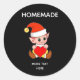 Um elfo bonito segurando um coração e um texto caseiro sobre adesivos pretos. O texto pode ser personalizado.