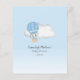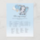 Brincar Quem é minha mamãe? No seu chá de fraldas com estes adoráveis elefantes do bebê, um é um elefante giro em um balão azul de ar quente com nuvem branca, e é um fundo de gradiente azul e branco.