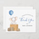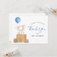 Obrigado seus convidados por comemorar a mamãe! Este cartões de agradecimentos apresenta um elefante aquarela com um balão azul sentado numa pilha de caixas de envio. Corresponde ao nosso chá de fraldas elefante por coleção de correio. Personalize com suas informações ou clique em "Clique para personalizar mais" para editar estilos de fonte, tamanho e cores.