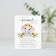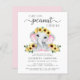 Uma menina rústica e econômica fez um convite com "Um Doce Pequeno Amendoim Está a Caminho" escrito em tipografia moderna e na moda com suavidades, e uma coloração d'água rosa pastel de um elefante bebê enfeitado em girassóis. Personalize o nome da mãe e os detalhes de aspersão em simples tipografia de cinzas.