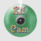 A Elf fez o ornamento da árvore de Natal do Polo Norte com uma câmera Elf em um fundo verde.