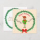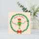 Cartão de Natal com elfo e bandolim. O texto pode ser personalizado.
