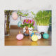 Elfos de bolota com ovos de Páscoa - cartão postal