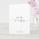 O cartão de voto do casamento Ellesmere apresenta uma design moderna minimalista sobre um fundo branco para uma aparência simples e limpa. O cabeçalho do script é uma imagem que não pode ser editada. Todo o outro texto é totalmente editável. Para personalização mais avançada deste design, basta selecionar o botão "Personalizar" acima.