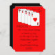 Este anúncio de elopemento apresenta um Royal Flush em corações, é claro. À direita das cartas, as palavras "Estava nas cartas!" aparecem. Abaixo das placas, você pode personalizar todos os detalhes da sua liberação. As cartas aparecem em um fundo vermelho, com a parte de trás do convite sendo preto. Uma forma excelente de anunciar seu casamento. Direitos autorais