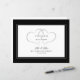 Design de anúncio de elopemento de recem casados preto e branco apresenta uma bela borda chic em preto que inclui uma elegante borda branca petite. "Sr. A & Sra." aparece em na moda caligrafia com dois corações entrelaçados que guardam os primeiros nomes do casal, organizado sobre um fundo branco nítido. A caligrafia e a escrita são cinzas de carvão sobre fundo branco. Personalize com seu nome e data do casamento. Um modelo moderno para data e ano complementa o design único de caligrafia. A parte de trás do papel fornece um modelo para a sua mensagem e espaço para as suas assinaturas manuscritas para adicionar esse toque pessoal.