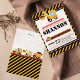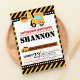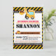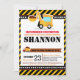 CUIDADO! Bebê Em Construção! Celebre sua festa de Chá de fraldas com nosso Convite de festas de Construção. Este convite à construção inclui uma grua, caminhão de sujeira e mixer caminhão de betão em listras amarelas e pretas. Perfeito para a sua festa de chá de fraldas de casais em construção ou um bebê está em chá de fraldas.
