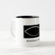 Nosso criador tem um sentido de humor. Daqui a inspiração para o design nesta 11,0 onças. caneca do dois-tom. O Ichthys, escrito às vezes Ichthus, é o símbolo dos peixes para o Jesus Cristo.