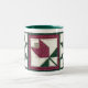 Quando as tempestades do inverno chocalharem suas janelas, snuggle sob uma edredão real este inverno com um bom livro e uma caneca de cozinhar o chocolate quente, o café ou o chá para o manter para se aquecer. O design acolchoado do ganso e da tulipa/flor nesta caneca foi criado por minha mãe, que é um quilter muito especializado, criativo, e prolífico. Os padrões encantadores da edredão foram feitos a varredura dos potholders que fez para mim diversos anos há.