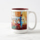Uma caneca de café de dois tons que descreve a ilustração e o poema "acordou a parada"