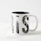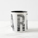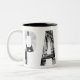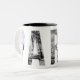 A caneca de café cerâmica à moda com a palavra PARIS imprimiu na foto preto e branco.