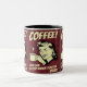 Aqui está uma caneca de café humorística para começar seu dia de trabalho. A vintage caneca de café mostra uma senhora segurando uma xícara que parece cheia de café. a legenda na imagem diz: "Café Você pode dormir quando seu morto!" Eu acho que este anúncio é hilário e espero que você também o faça. Você pode comprar esta caneca de café vintage engraçada na minha impressão a pedido. Até a próxima vez, acalme-se e aproveite