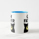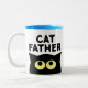 Pai Gato presente de caneca de café engraçada para o dono do animal. Uma xícara branca e bonita, com desenho animado de gatinho e citação humorística. Ideia divertida de presente para amante de os animais, dono de gato, pessoa de gato, pai de gato, amante de estimação etc. Cor azul ou personalizada no dentro. Silhueta de gato engraçada com olhos grandes amarelos.
