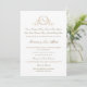 Convite de casamento elegante com um design clássico mostrando um delicado monograma em película dourada, mostrando as iniciais do casal. Design tradicional com nomes de pais ou nomes familiares em caligrafia elegante. Ideal para casais que gostam de um estilo limpo, clássico e elegante. Texto na cor do ouro. Sinta-se livre para alterar o texto de acordo com o seu gosto pessoal usando as caixas de texto ou acessando a ferramenta design com o botão no final das caixas de texto. Encontre placas de coordenação e produtos dentro da coleção "Casamento Minimalista Elegante da Caligrafia". Enquanto todos os itens estiverem em inglês, na maioria das vezes, você pode mudar seu texto para espanhol usando as caixas de modelo. Visite a coleção em: https://www.zazzle.com/collections/elegant_calligraphy_minimalist_wedding_stationery-119497981924462546