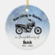 Lembre-se do seu amado com este Enfeites de natal personalizado com uma moto. Personalize o nome e as datas.