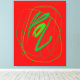 Esta canvas mostra um fazer expressivo de linha verde um grande movimento através da superfície vermelha. É inspirado pela técnica de dança de José Limón.