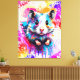 Impressão de Tela Esticada de Hamster Esticada - Impressão de Tela de Hamster Colorida - Pintura de Hamster