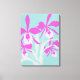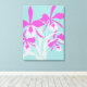 Adicione uma grande abertura de orquídeas roxas e aqua teal a uma sala sem repintar paredes com esta tela floral contemporânea em tons orquídeas roxos bonito e radiantes em um fundo de canvas aqua teal. Flor moderna mostra três tons desenhando no estilo da orquídea simppoldial de cattleya.