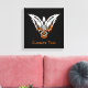 Ícone de pássaro estilo tribal inspirado em designs de nó celta. Cor de fundo personalizada. Texto personalizado.