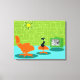 Diz-se que os cães têm donos e os gatos têm funcionarios. O felino neste Gatinho da Idade do Espaço Retroativo Impressão de Tela Esticada não conseguia concordar mais! A design de arte minimalista estilo 1960 apresenta um gato preto elegante numa sala de estar moderna de meio século. A sala sofisticada apresenta uma parede verde de pedra. O tapete é aqua com sombras. Entre as mobílias da sala estão uma figura amarela, a luz do sputnik, uma cadeira laranja com fezes e uma televisão verde com orelhas de coelho. O gato negro sortudo pode ser visto empoleirado nas bancadas em frente à televisão. Seu show favorito está ligado! Na tela da televisão, podemos ver uma família de televisão clássica, preto e branco, resolvendo todos os problemas da vida em um show de meia hora. Esta design é perfeita, se nós próprios o dizemos.