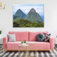 A Rua Lúcia Maiestosa Pitons é uma das mais belas paisagens do mundo. Diz-se que as montanhas icônicas da ilha são o sítio mais fotografado no Caribe e o mais famoso par de montanhas do planeta, os Pitões são um imperativo para quem visita a ilha. Situado a sul da cidade de Soufriere, na costa oeste, Gros Piton (771 m / 2.619 pés) e Petit Piton (743 m / 2.461 pés) sobem de forma regular do Caribe azul abaixo. Esta Foto é uma vista do interior.