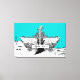 Guitarra branca preta, com asas, impressão de canvas de, apresentando uma guitarra elétrica, asas, chamas e espirais em pentagrama de música, notas e clave tripla sobre fundo azul de turquesa. Um presente de excelente para um músico, guitarrista ou amante.