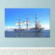 Esta tela mostra um veleiro que voa várias bandeiras em um belo dia em águas calmas. Nossas impressões são impressas com a resolução mais alta em papel de arquivamento de algodão-poli, para uma impressão resistente a perda de longa duração, medida de 54,60" x 35,40". Este impressão vai fazer a adição perfeita para iluminar qualquer casa ou escritório.