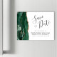 Este elegante cartão magnético de data salta uma cor d'água verde esmeralda, borda agitada com brilho dourado falso. O texto personalizável combina o script de escrita manual de cinzas de carvão, o copperplate e as fontes itálicas em um fundo branco.