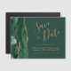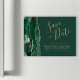 Este elegante cartão magnético de data salta uma cor d'água verde esmeralda, borda agitada com brilho dourado falso. O texto personalizável combina um script de escrita manuscrita dourado, fontes em copperplate e itálico em um plano de fundo verde.