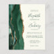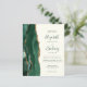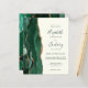 A borda esquerda deste elegante convite de casamento moderno apresenta uma esmeralda verde aquarela agate borda com falsa brilho dourado. O texto personalizável combina fontes de script, copperplate e itálico em verde esmeralda em um fundo de marfim. O verso apresenta um design emerald verde e dourado.