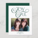 Orçamento Moderno Emerald Green Joyful Cartões com fotos de Natal com uma tipografia de tendências e na floresta na moda de esmeralda verde-esmeralda profunda. **O nosso documento sobre o ORÇAMENTO é mais pequeno e delicado, mas ainda é bonito!** Para uma comparação de tipos de papel, veja o nosso vídeo aqui: https://youtu.be/G0F9Am5HPD4 Se precisar de assistência ou de itens correspondentes, contacte-nos em cedarandstring@gmail.com.
