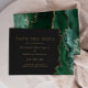 A borda direita deste elegante moderno salve a data card apresenta uma esmeralda verde aquarela agate borda aparada com falsa brilho dourado. O texto personalizável combina fontes de serif romana de cor dourada e fontes de copperplate em um fundo fora de preto. O verso apresenta um design verde e dourado correspondente.