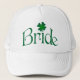 Este boné de bola "Bride" verde e branco da floresta tem um trevo de 4 folhas sortudo na frente, com o shamrock verde como ponto do "i".