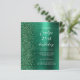A borda esquerda deste convite de aniversário moderno apresenta uma borda cintilante verde esmeralda. O texto personalizável combina o script branco e as fontes sans serif em um fundo embebido de metal verde esfregado. O verso apresenta um design correspondente.