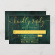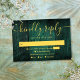 Um cartão RSVP de madeira rustica verde esmeralda com seus detalhes definidos na tipografia do ouro moderna. Projetado por Thisnotme©