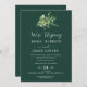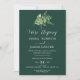 Celebre seu amor com este elegante convite de recepção de casamento esmeralda verde-verde. Com folhas de cor verde-d'água escura e eucalipto, esta design combina o encanto rústico com uma moderna sensação boêmica. As placas RSVP estão disponíveis separadamente ou você pode incluir detalhes RSVP na parte traseira da placa.