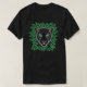 Esmeralda Panther T-Shirt Uma t-shirt preta impressionante que apresenta a majestosa silhueta da cabeça de uma pantera esboçada em branco, os seus olhos verdes esmeraldas piercing a chamar a atenção contra o fundo escuro, rodeada por uma folhagem verde esmagadora que acrescenta um ar de mistério e intrigação. "seu aniversário, seu aniversário, presentes" "Panther, Outline, White, Emerald", "Green, Eyes, Black, Background, Foliage", "Selgle, Majestade, Selvagem, Elegância, Regal", "Silhouette, Intensity, Captivating, Strike", "Lush, Wilderness, Grace, Gaze", "Intrigue, Mística, Indomada "