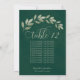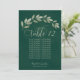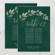 Estes bonitos cartões de número da mesa de casamento apresentam um design rústico com uma borda de folhas de cor de água verde ou clara pintadas à mão num fundo verde esmeralda marmoreado. A inscrição é feita em fontes modernas e a folhagem elegante e verde é perfeita para adicionar estilo e classe à sua recepção de casamento. O cartão tem espaço para um assento gráfico ou uma lista de dez nomes fazer que é ainda mais fácil para seus convidados encontrar seus assentos.