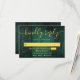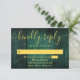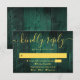 Um cartão de RSVP de celeiro boho de madeira rústica esmeralda verde com seus detalhes definidos em tipografia dourada moderna. Projetado por Thisisnotme©