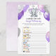 Este divertido jogo de chá de fraldas apresenta elefante roxo e cinza com balões e confete. Seus hóspedes podem resolver as rimas dos berçários decodificando os emojis/emoticons. Chave Emoji: 1. Diddle Diddle 2. Twinkle Twinkle Pequena Estrela 3. Itsy Bitsy Spider 4. Cinco macacos pulando na cama 5. Dickory Dock 6. O velho MacDonald tinha uma Fazenda 7. Enche O Pequeno Bebê 8. Rub-a-Dub-Dub 9. Menina Muffet 10. Um, Dois, Meu Calçado 11. Jack e Jill 12. Fila Row Row Seu Barco 13. Havia uma velha mulher 14. Star Light Star Bright 15. Baa, Baa, Ovelha Negra