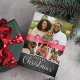 O cartão com fotos festivo apresenta quatro das suas imagens favoritas adornadas com uma ilustração do arco de fita de cor vermelha. "Feliz Natal" aparece debaixo de letras brancas sobre um fundo de chalkboard rústico. Personalize com seus nomes e o ano.