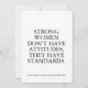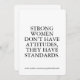 Celebrar a feroz feminilidade com este cartão ousado: "Mulheres fortes não têm atitudes, elas têm padrões." Um presente personalizado poderoso para ela — perfeito para mulheres, meninas e amigos confiantes que sabem o seu valor. Empoderamento, inspiração, aumento. carta feminina forte, presente de empoderamento feminino, carta feminista, presente inspiracional para ela, cartão de mulher confiante, cartão de mulher confiável, cartão de mulher confiável, cartão personalizado para ela, citação feminina ousada, cartão motivacional, cartão de citação feminista, cartão feminista personalizado, mensagem feminista forte, presente para mulheres confiantes, cartão de citação, melhor cartão de empoderamento amigo, não cartão de atitude, cartão de dia para mulheres, cartão feminista para raparigas, oferta empoderadora, cartão de aniversário para mulheres, cartão de citação personalizado, presente de graduação para mulheres, cartão de encorajamento, para o seu cartão, para as mulheres, papelaria feminista, cartão de líder feminino forte, cartão de confiança, cartão de direitos para as mulheres, presente de chefe de menina, cartão de encorajamento para as raparigas, cartão de mensagem inspirador, cartão para as mulheres fortes