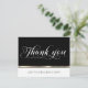 Cartões de agradecimentos de ouro e preto empresarial elegante. Personalize adicionando seu próprio texto e logotipo. A parte traseira do cartão tem espaço para adicionar nome, endereço e site da empresa. Perfeito para ordens de compra, negócios para negócios ou qualquer outro obrigado que você ocasionar.