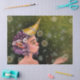 En el bosque es un diseño muy especial ilustrado por mi de una manera muy cariñosa, representa los sueños, la fragilidad del momento. Una niña (inspirada en mi hija pequeña) transformada en esa hada del bosque. Ideal para verla sobre tus trabajos mas preciados y usada con mucho cariño.
