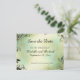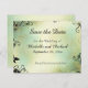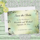 Salve o anúncio do casamento de Data em um fundo de cor d'água suja de blues macios, verdes e creme, acentuado com uma folha preta e borda de espiral. Consulte o convite correspondente e outros itens neste design no compro Monogramas andMonikers no Zazzle.