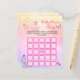 Entra num mundo de encantamento com o nosso Cartão de Jogo Bingo de Chá de fraldas de Borboleta "Estamos Encantados a Conhecê-Lo". Abraçar a beleza química das borboletas roxas fluindo através de um jardim encantado. Celebre o milagre da nova vida com um tema de chá de fraldas da era mãe que é mágico e inesquecível. Transportem seus convidados para um reino de conto de fadas com nossas ideias chás de fraldas encantadas, onde todos os detalhes são cuidadosamente trabalhados para criar uma atmosfera de maravilha e alegria. Imaginem um chá de fraldas cheio de beijos de borboletas e cercado pelo fascínio de uma festa mágica de jardim. Com este tema, você não está apenas convidando seus entes queridos a comemorar, mas também convidando-os a fazerem parte de uma experiência verdadeiramente extraordinária. Que comece o encantamento!