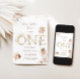 Convide amigos e família para comemorar o primeiro aniversário de sua garotinha em estilo encantador com nosso convite editável! Apresentando fadas brancas em cores pastéis macios com delicados sotaques dourados, ele dá o tom para uma celebração mágica de fadas boêmicas.